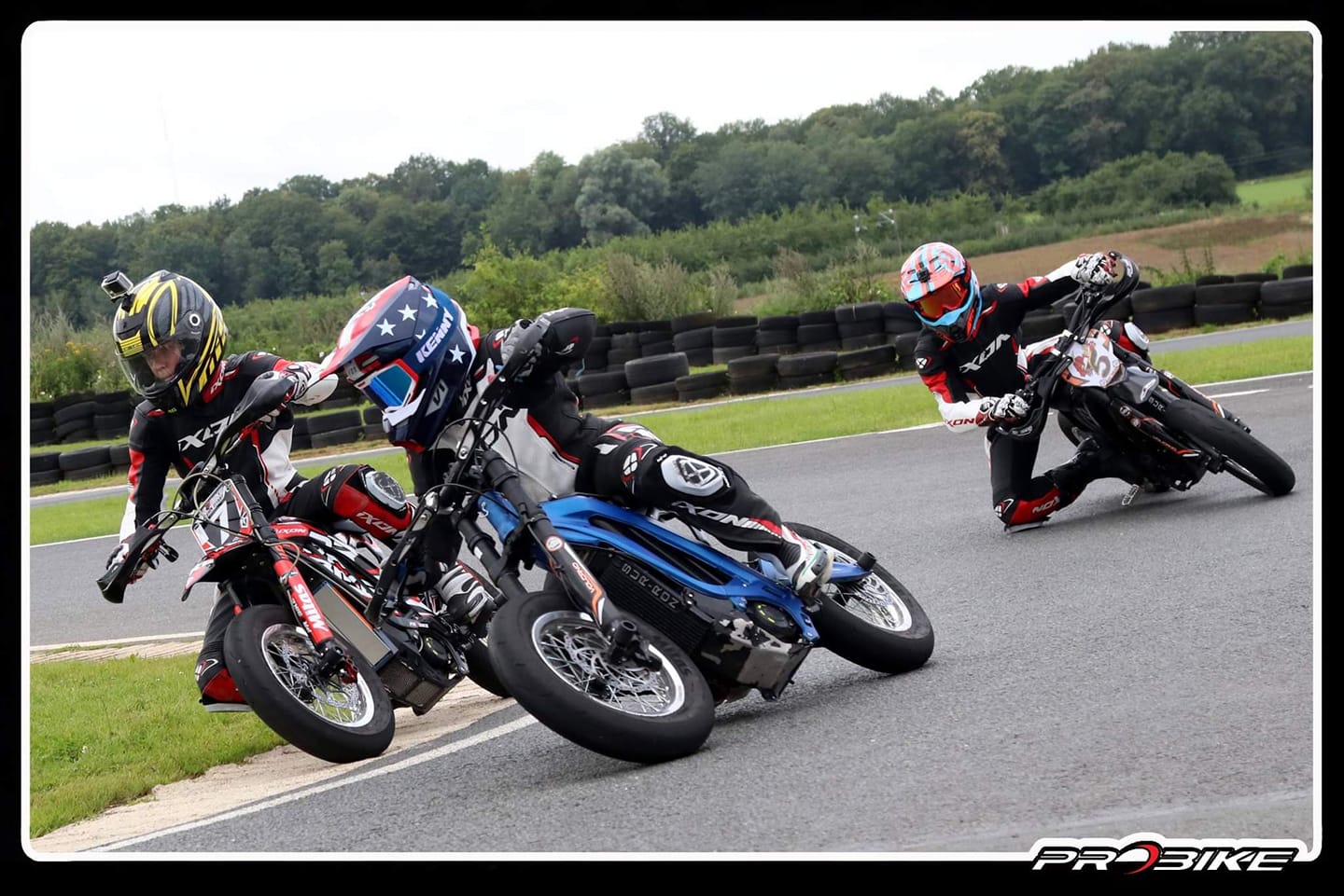 A wheel is nothing more than a gyro. The larger the wheel the greater the gyroscopic tendencies. Small supermoto tires have much lower gyroscopic tendencies allowing for a much more flickable bike which lets you come out of one corner and change lean to another corner much faster. Not to mention they drastically lower your center of gravity.